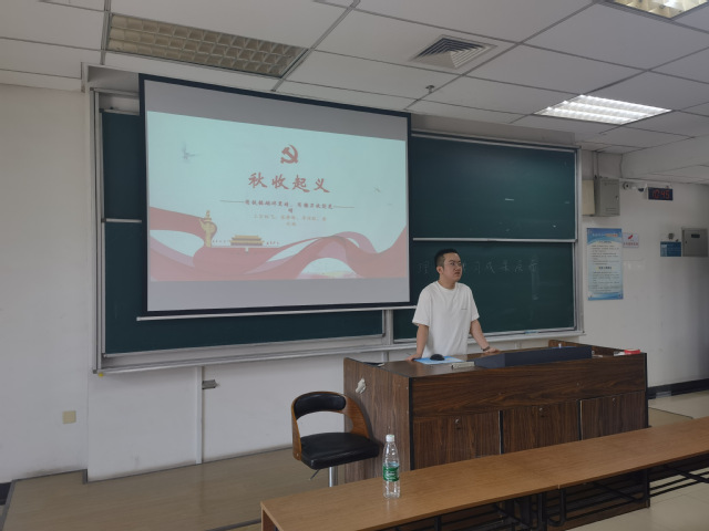 会议开始,2020级入党积极分子唐益汛、曾新宇与上官林飞作党史分享,三位同学分别以中国共产党的成立、南昌起义与秋收起义,这三件具有重要历史意义的事件,从发生的背景、结果和意义角度进行了详细地讲解,使同学们感受到共产党员迎难而上,愈挫愈勇的精神品质,认识到共产党一路走来的艰难困苦以及不忘初心,矢志不渝的优良传统。
