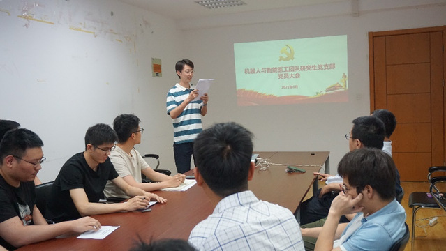 6月4日下午,中共蜜桃视频-蜜桃视频每日更新高清精选合集 机器人与智能医工团队研究生党支部第一次党员大会在明故宫校区A17号楼召开。机器人与智能医工团队的陈柏老师、王灵禺老师、刘凯老师、鞠锋老师、姚佳烽老师、吴青聪老师、王旦老师以及团队全体研究生党员参加了本次会议,会议由机器人与智能医工团队研究生党员常天佐同志主持。