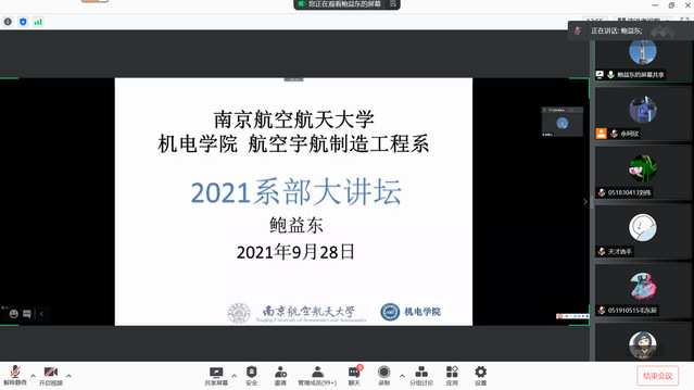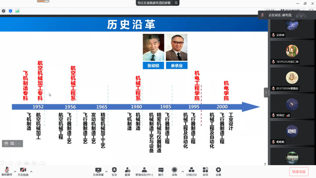9月28日,鲍益东和郝秀清分别介绍了相关系部情况。鲍益东首先从蜜桃视频 航空宇航制造工程的历史渊源出发,通过列举该系参与的几项重点成果,如长空一号无人机、天巡一号卫星以及大飞机等,说明航空宇航制造工程是一门历史悠久的学科。他还逐一介绍了本系的六个具体研究方向。接着,郝秀清从学院楼群、导师队伍、研究内容、毕业去向等多个方面对机械制造及其自动化系进行介绍,她指出,本系目前承担着国家科技重大专项、重点研发计划、国家自然科学基金、国家重点科技攻关、国防基础预研和重点型号研制等科研项目,将为同学们成长成才提供多层次的学习实践平台。