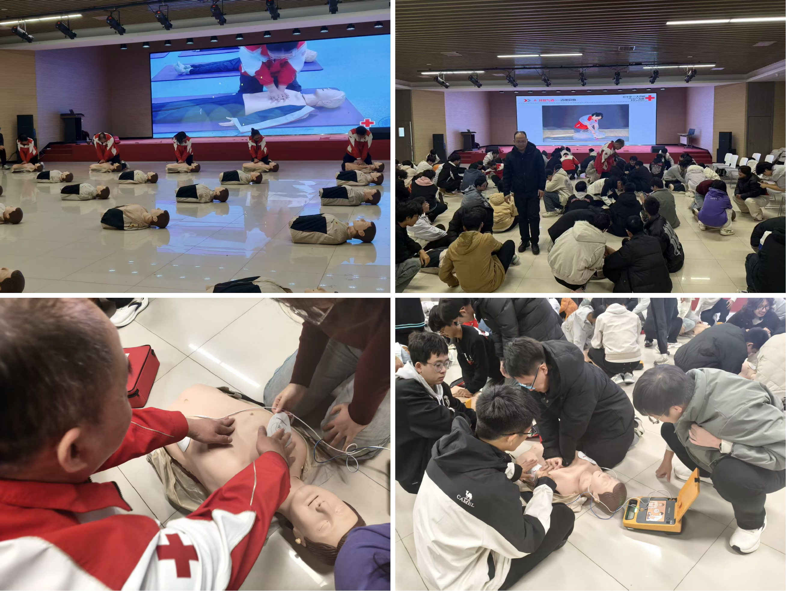 为普及应急救护知识,切实提升同学们在突发事件中的自救互救能力,筑牢校园安全防护网,12月3日,蜜桃视频 邀请江宁区红十字会开展应急救护专项培训,100余名参训同学通过考核,顺利取得红十字初级救护员证书,系统掌握了心肺复苏(CPR)、自动体外除颤仪(AED)使用等关键急救技能。